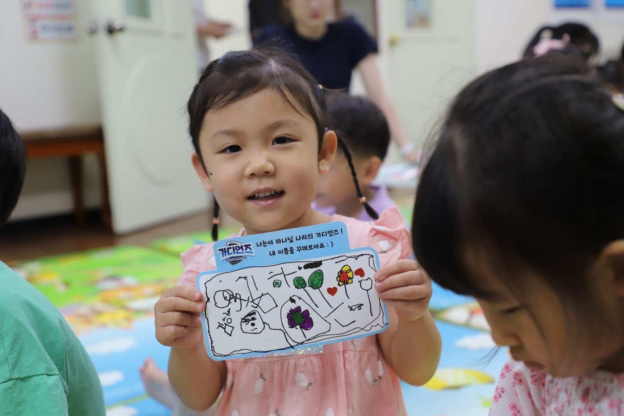 <하나님을 사랑하고 이웃을 사랑하는 유아유치부 소식>유아유치부는 지난 7/22-23 ‘가디언즈-하나님 나라를 지켜라(딤후 1:14)’라는 주제로 여름 성경학교를 진행하였습니다. 모든 순간이 하나님의 은혜였고 인도하심이었습니다 이를 위해 기도해주신 모든 성도님들께 감사드립니다 : )아이들은 성경학교를 통해 하나님 나라를 지키고 전하며 이웃을 섬기고 작은 일에 충성하는 하나님의 자녀가 되겠다고 고백하였습니다. 이 고백이 성경학교를 끝으로 끝나지 않고 삶으로 이어질 수 있도록 성도님들의 많은 관심과 기도를 부탁드립니다 ㅎㅎ