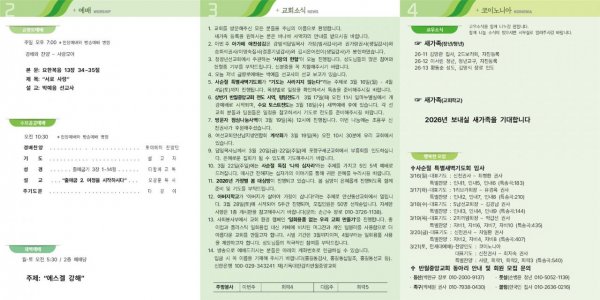 1월 4일 교회소식